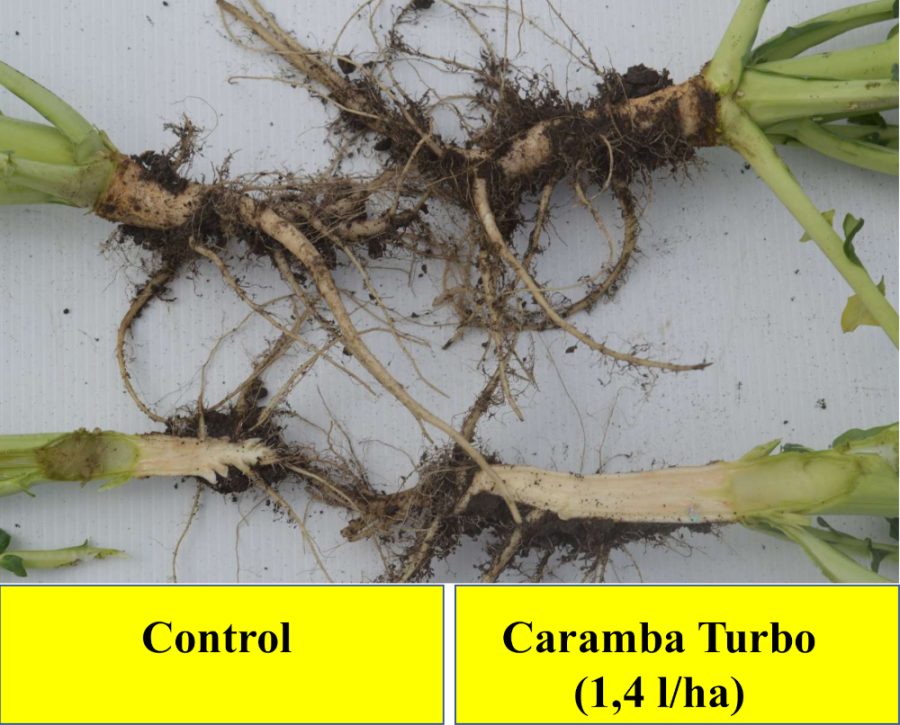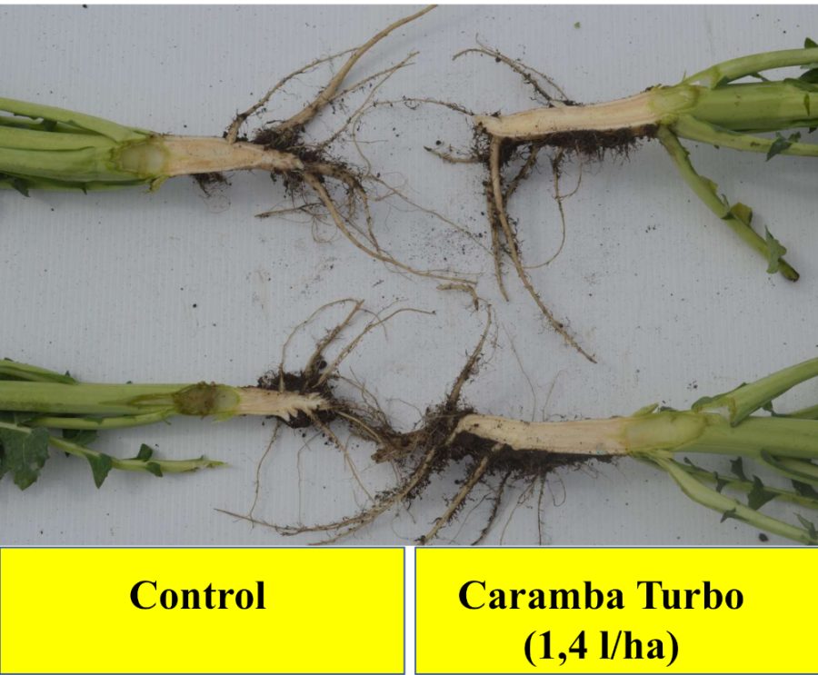 În același timp pe lângă reglarea creșterii și îmbunătățirea arhitecturii rapiței, Caramba® Turbo  are și acțiune fungicidă: componenta metconazol oferă protecție împotriva bolilor cheie de primăvară, precum Phoma, Alternaria și făinarea.