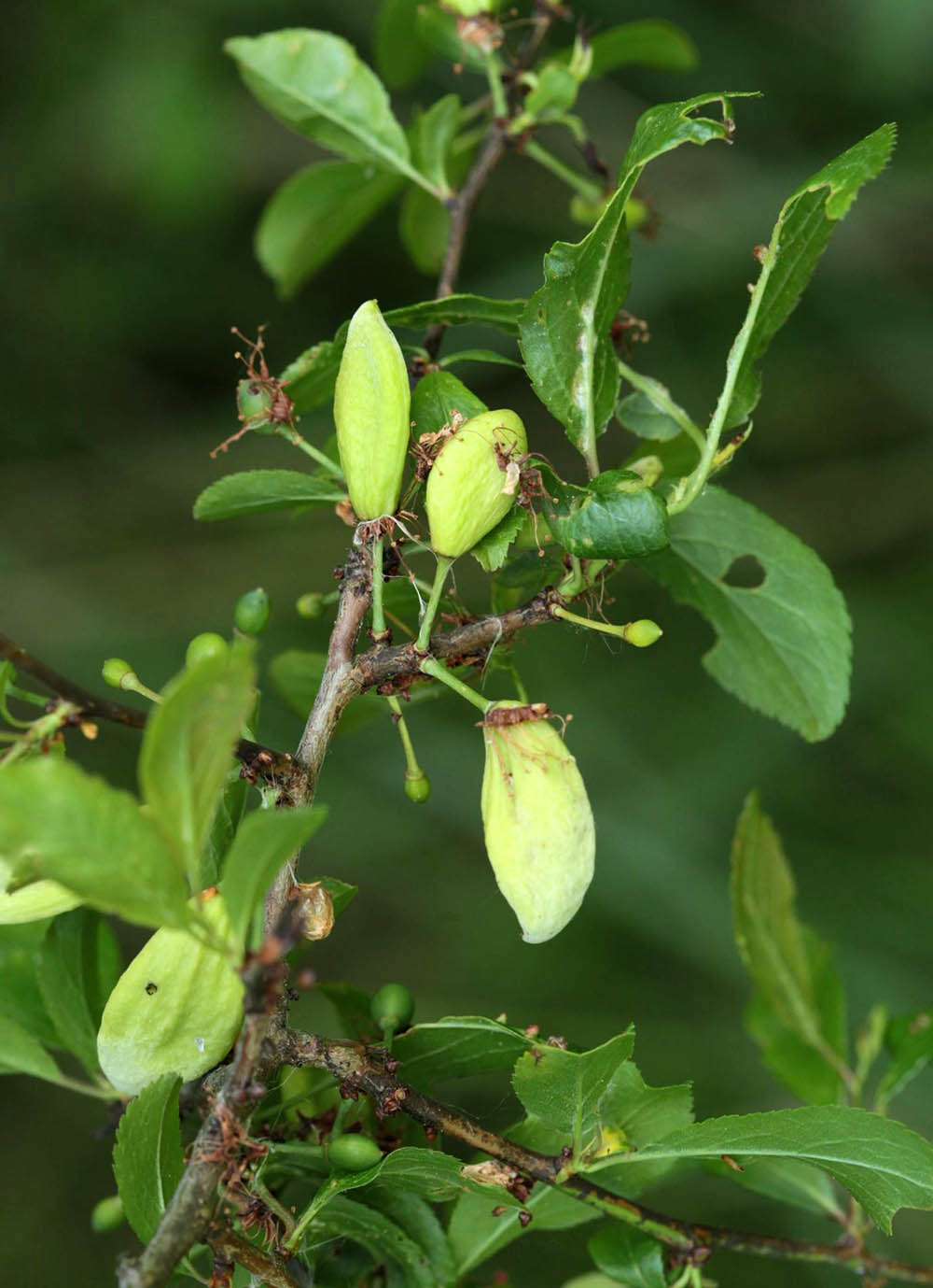 Patogenul atacă pomii de sâmburoase, în special caisul și piersicul, dar și prunul. Această boală micotică la cultura prunului afectează: mugurii și frunzele – scade recolta de fructe și slăbește pomii.