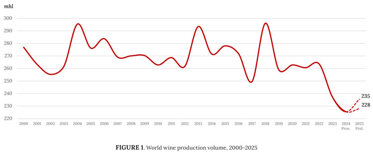 Producția mondială de vin (2000-2025)